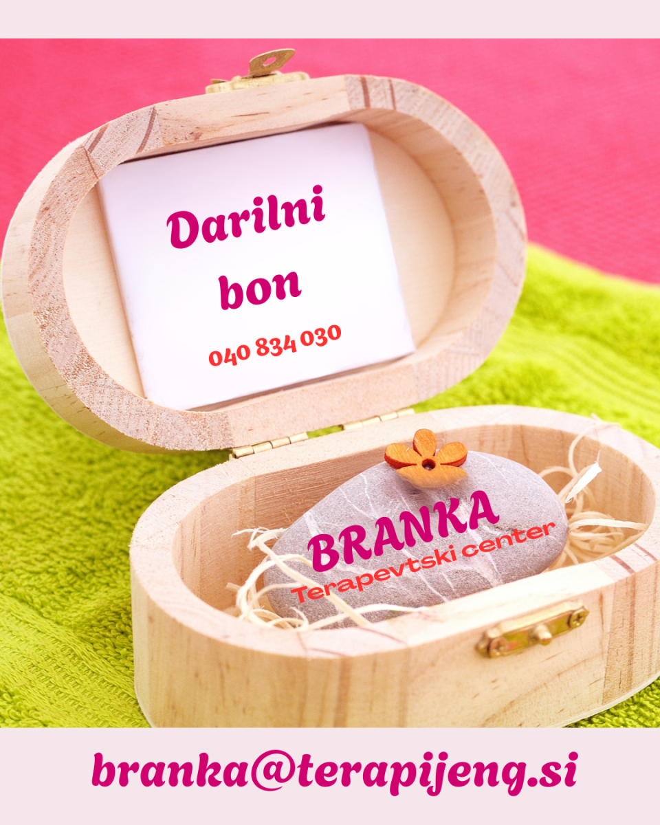 Naročite Darilni bon Branka terapevtski center – dogovoriva se za vrsto tretmaja, ceno in prejemnika.